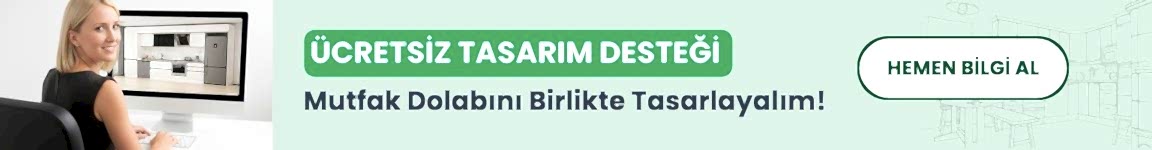 Hazır mutfak dolaplarımız, özel ölçü üretim seçeneği ile mutfağınıza tam uyum sağlayacak şekilde üretilmektedir. Tamamen ücretsiz ve profesyonel tasarım desteğimiz sayesinde, mutfağınızı en verimli ve estetik şekilde planlıyoruz.